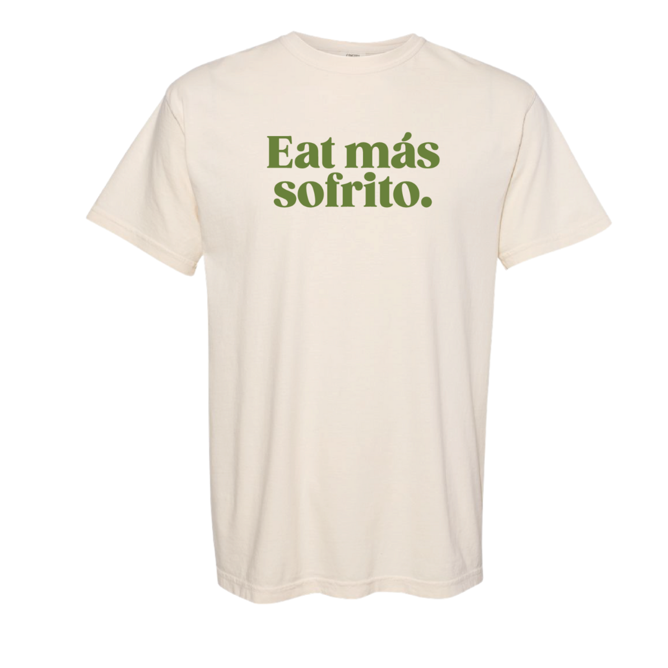 For the sofrito lovers! This set includes 1x bottle each of our versatile and vibrant Sofrito sauces (3 jars total: Classic, Rojo y Recaito!), plus 1x each of our limited edition "Eat Más Sofrito" tee and tote. Choose a shirt size and share the flavor!