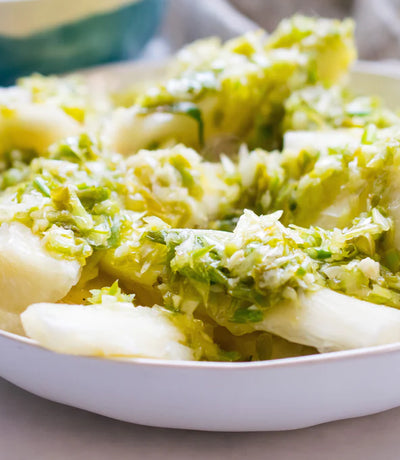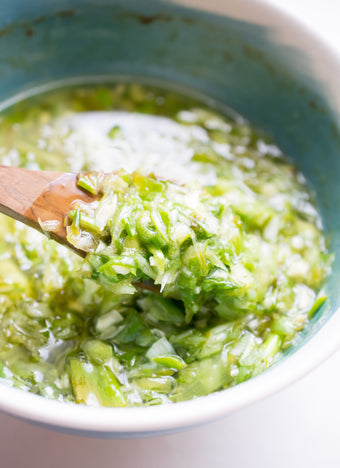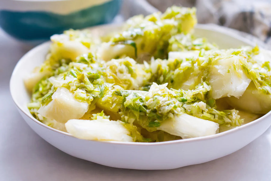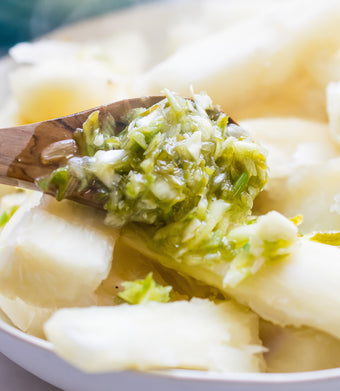 Growing up, yuca con mojo was a staple at Cristina Curp's table, with memories of crushing the garlic, slicing the onions, and all the aromas of the kitchen. Scallion has its unique flavor and it really shines in this simple mojo rendition.